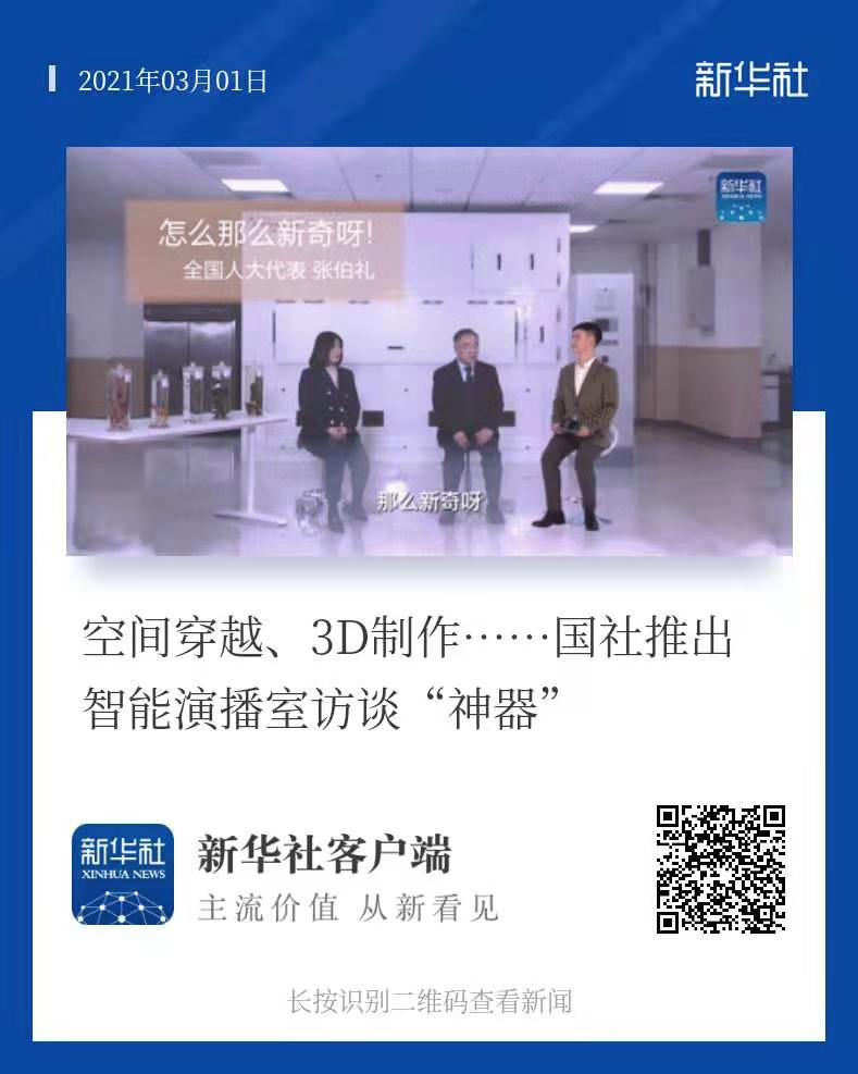 2021年全国“两会”前夕,北京新华社新立方智能化演播室与天津中医药大学实验室展开了一场别开生面的“异地同屏”访谈。此次异地访谈的视觉呈现,让众人惊呼真实,如同在同一空间进行交流互动。这也是新华社继去年的“全息异地同屏”后,再次探索将数字化“黑科技”运用到两会访谈中。