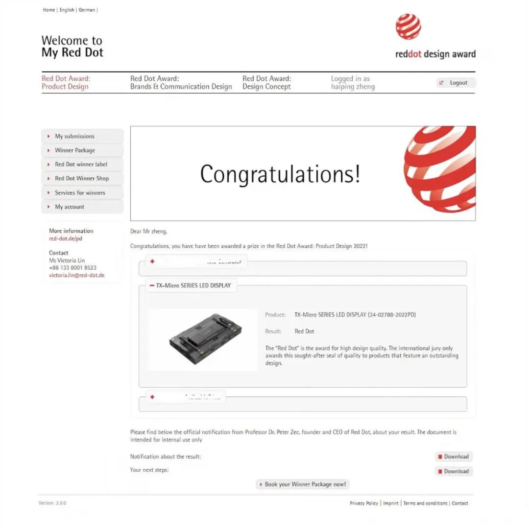 红点设计大奖由德国设计协会创立,至今已有超过60年的历史。该奖项与德国IF奖、美国IDEA奖一起并称为世界三大设计奖。红点奖每年吸引超过60个国家的近万件作品参与角逐,评选标准极其严苛,只有被公认具有国际性创意和设计的产品才能获此殊荣。金年金字招牌此次获奖的TX-Micro系列LED显示屏、TVS系列小间距LED、HKS LED显示屏产品凝聚着全球前沿技术和创新设计,当之无愧。