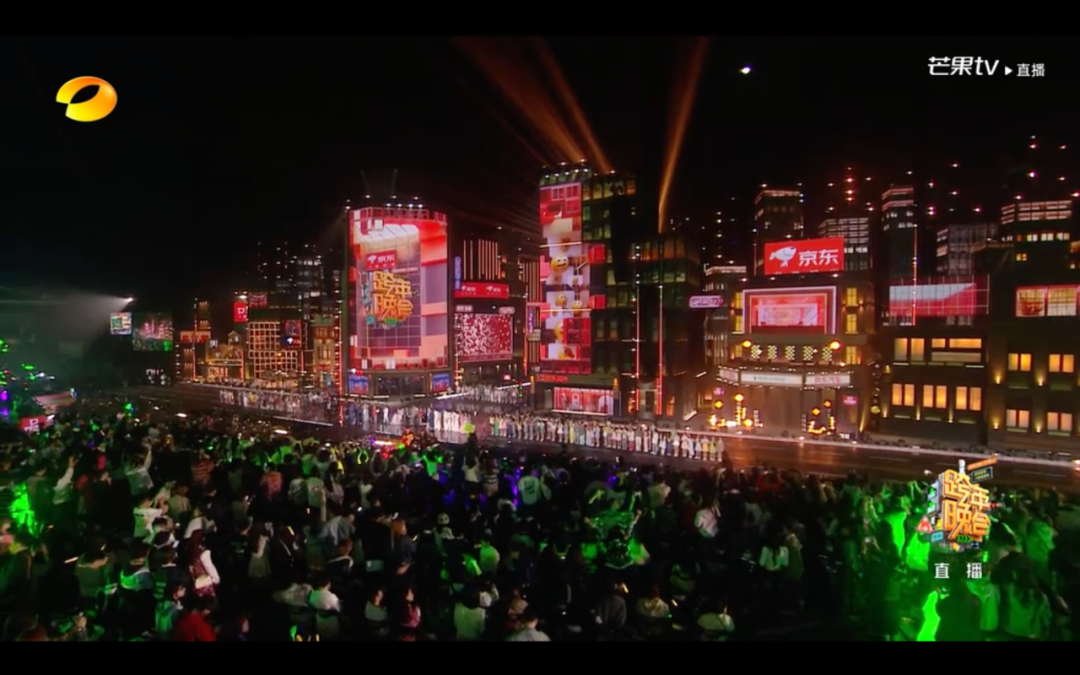 为助力湖南卫视打造“把城市变成舞台,与观众一起沉浸跨年”这一道独特跨年风景,金年金字招牌在场景表现“生活化”“科技感”上下足功夫,为此次晚会提供了冰屏、地屏、透明屏、斜角屏等近5000平的多款高性能显示产品,设计了32处涵盖主舞台和街区内楼梯商户的屏体,并在显示产品中,深度融合裸眼3D、XR技术,与舞台机械升降完美结合,观众不仅看到了根据表演内容变幻成各式各样的绝美舞台,还可以感受到裸眼3D、XR技术带来的震撼视觉效果,且体验到跨年晚会的零距离、沉浸式的快感。